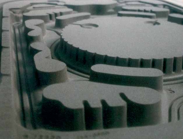 Täysautomaattinen laskeva kaavauskone, jossa rullarata malleille ja kuljetusvaunu muotinpuolikkaiden valmistukseen, vakiovarusteena monipäämäntä.